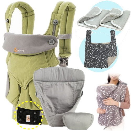 エルゴベビー 抱っこ紐 (ベルト付) 360スリーシックスティ/グリーン・インサート3III+防寒セット 【正規品2年間保証-SG認定】 +防寒ケープ&よだれパッド