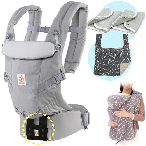 エルゴベビー 抱っこ紐 (ベルト付) ADAPTアダプト/パールグレー+防寒セット 【正規品2年間保証-SG認定】 +防寒ケープ&よだれパッド
