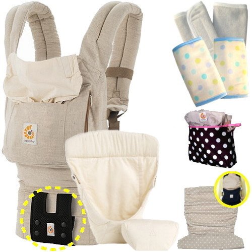 ベビーウエストベルト付エルゴベビー 抱っこ紐 ナチュラル リネン・インサート3III 【日本正規品2年間保証-SG認定付】フードカバー&パッド2個&ポーチ付