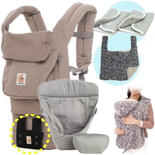 エルゴベビー 抱っこ紐 (ベルト付) オリジナル/ムーンストーン・インサート3III+防寒セット 【正規品2年間保証-SG認定】 +防寒ケープ&よだれパッド