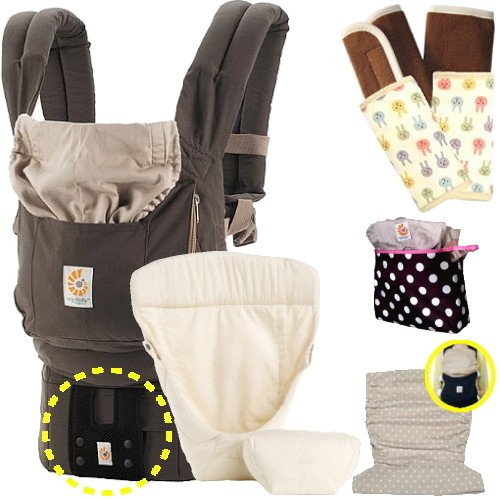 ベビーウエストベルト付エルゴベビー 抱っこ紐 オーガニック ダークココア・オーガニックインサート3III 【正規代理店2年間保証-SG認定付】フードカバー&パッド2個&ポーチ付