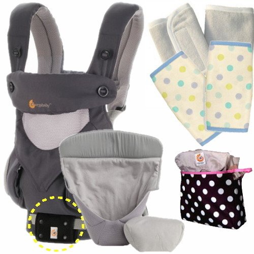 エルゴベビー 抱っこ紐(ベルト付) 360スリーシックスティ/カーボングレー・クールエアインサート3III 【正規品2年間保証-SG認定付】パッド2個+収納ポーチ付