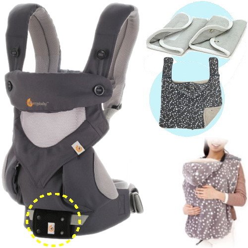 エルゴベビー 抱っこ紐 (ベルト付) 360スリーシックスティ/カーボングレー・クールエア 防寒セットL 【正規品2年間保証-SG認定】 +防寒ケープ&よだれパッド