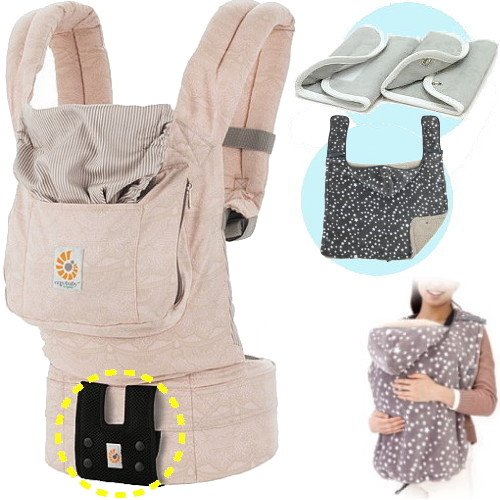 エルゴベビー 抱っこ紐 (ベルト付) オーガニック/ローズハーモニー・防寒セットL 【正規品2年間保証-SG認定】 +防寒ケープ&よだれパッド