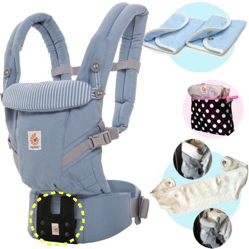 ベビーウエストベルト付エルゴベビー・抱っこひも【日本正規品2年間保証-SG認定付】2 ADAPTアダプト/アズールブルー (よだれパッド+ママ&ベビー両用カバー+収納ポーチ付)
