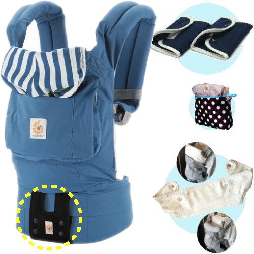- ベビーウエストベルト付き。専用よだれパッド+エルゴ収納用ポーチ+ママ&ベビー両用カバー付き!(※収納ポーチの配色は変更する場合がございます。)