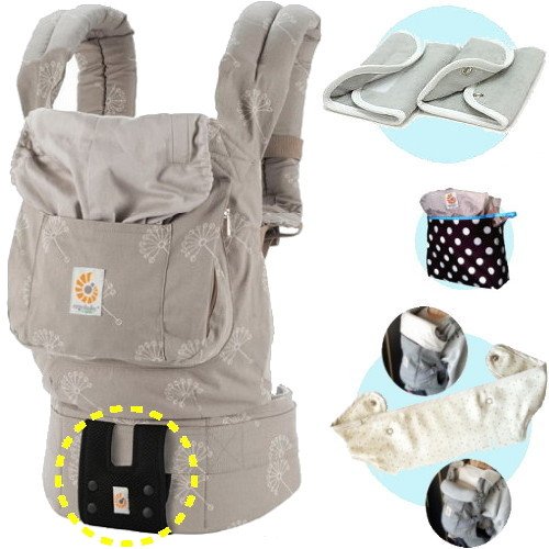 ベビーウエストベルト付エルゴベビー・抱っこ紐 【正規品2年間保証-SG認定付】 オーガニック・ダンデライオン (よだれパッド+エルゴ収納用ポーチ+ママ&ベビー両用カバー付)