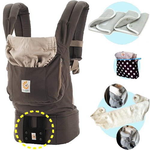 ベビーウエストベルト付エルゴベビー・抱っこ紐 【正規品2年間保証-SG認定付】 オーガニック・ダークココア (よだれパッド+エルゴ収納用ポーチ+ママ&ベビー両用カバー付)