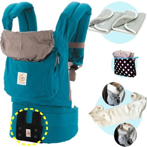 ベビーウエストベルト付エルゴベビー・抱っこ紐 【正規品2年間保証-SG認定付】 ティール (よだれパッド+エルゴ収納用ポーチ+ママ&ベビー両用カバー付)