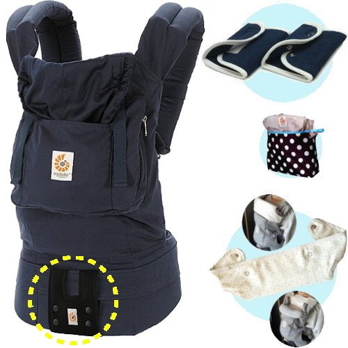 ベビーウエストベルト付エルゴベビー・抱っこ紐 【正規品2年間保証-SG認定付】 オーガニック・ネイビーミッドナイト (よだれパッド+エルゴ収納用ポーチ+ママ&ベビー両用カバー付)