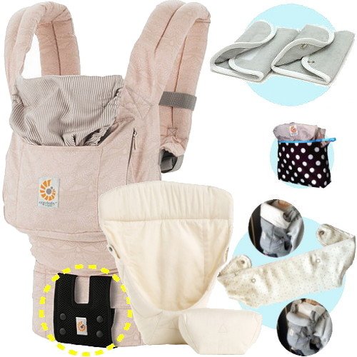 - ベビーウエストベルト付きキャリア&インサートセット。専用よだれパッド+エルゴ収納用ポーチ+ママ&ベビー両用カバー付き!(※収納ポーチの配色は変更する場合がございます。)