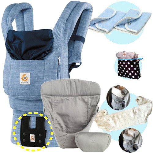 - ベビーウエストベルト付きキャリア&インサートセット。専用よだれパッド+エルゴ収納用ポーチ+ママ&ベビー両用カバー付き!(※収納ポーチの配色は変更する場合がございます。)