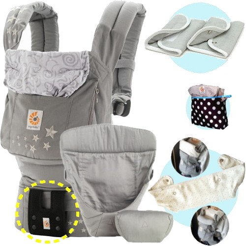 - ベビーウエストベルト付きキャリア&インサートセット。専用よだれパッド+エルゴ収納用ポーチ+ママ&ベビー両用カバー付き!(※収納ポーチの配色は変更する場合がございます。)