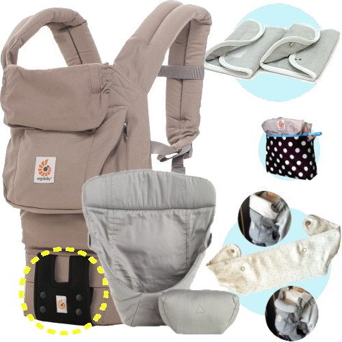 - ベビーウエストベルト付きキャリア&インサートセット。専用よだれパッド+エルゴ収納用ポーチ+ママ&ベビー両用カバー付き!(※収納ポーチの配色は変更する場合がございます。)