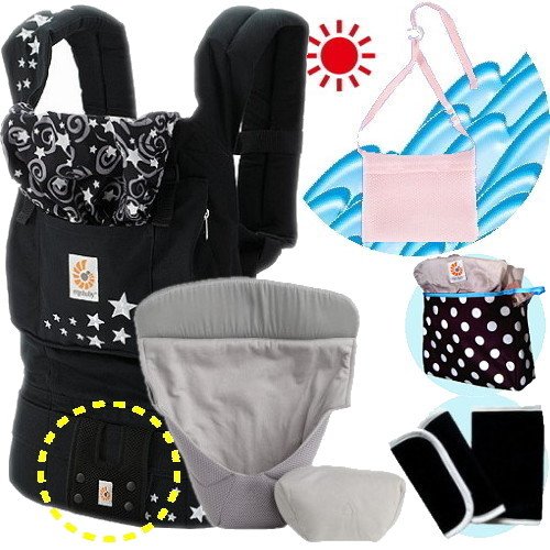 エルゴベビー抱っこ紐(ベルト付)/出産祝サマーセット (ナイトスカイ)クールエアインサート3III【正規品2年間保証-SG認定付】よだれパッド+収納ポーチ+ひんやりクールパット付