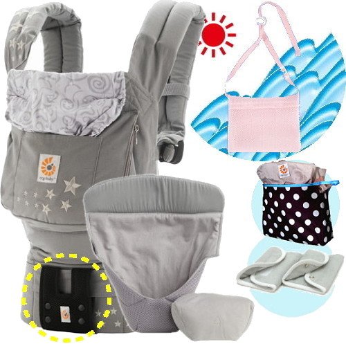 エルゴベビー抱っこ紐(ベルト付)/出産祝サマーセット (ギャラクシーグレー)クールエアインサート3III【正規品2年間保証-SG認定付】よだれパッド+収納ポーチ+ひんやりクールパット付