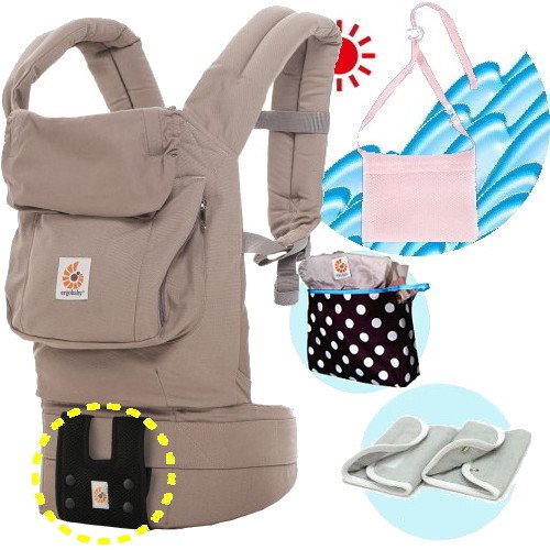 エルゴベビー抱っこ紐(ベルト付)/出産祝サマーセット (ムーンストーン)【正規品2年間保証-SG認定付】よだれパッド+収納ポーチ+ひんやりクールパット付