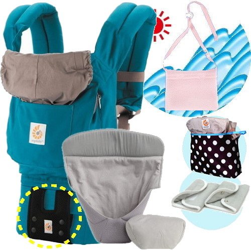エルゴベビー抱っこ紐(ベルト付)/出産祝サマーセット (ティール)クールエアインサート3III【正規品2年間保証-SG認定付】よだれパッド+収納ポーチ+ひんやりクールパット付