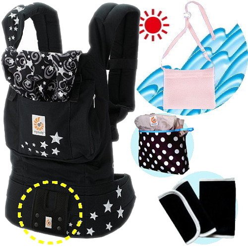 エルゴベビー抱っこ紐(ベルト付)/出産祝サマーセット (ナイトスカイ)【正規品2年間保証-SG認定付】よだれパッド+収納ポーチ+ひんやりクールパット付