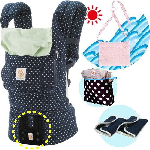 エルゴベビー抱っこ紐(ベルト付)/出産祝サマーセット (ミントドット)【正規品2年間保証-SG認定付】よだれパッド+収納ポーチ+ひんやりクールパット付