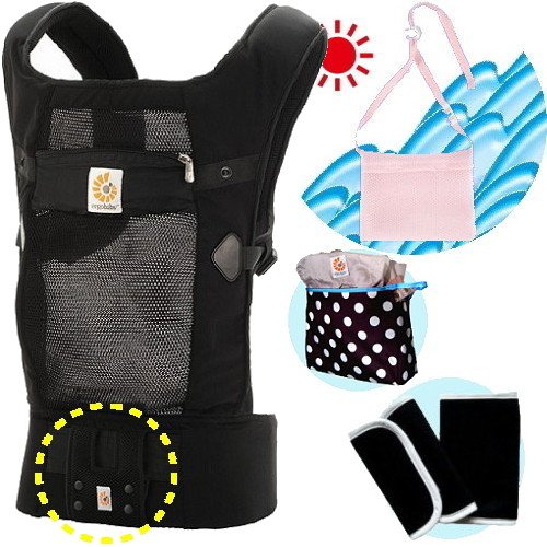 エルゴベビー抱っこ紐(ベルト付)/出産祝サマーセット (ヴェント・スブラック)【正規品2年間保証-SG認定付】よだれパッド+収納ポーチ+ひんやりクールパット付
