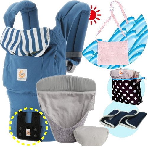 エルゴベビー抱っこ紐(ベルト付)/出産祝サマーセット (ビーチハウス)クールエアインサート3III【正規品2年間保証-SG認定付】よだれパッド+収納ポーチ+ひんやりクールパット付