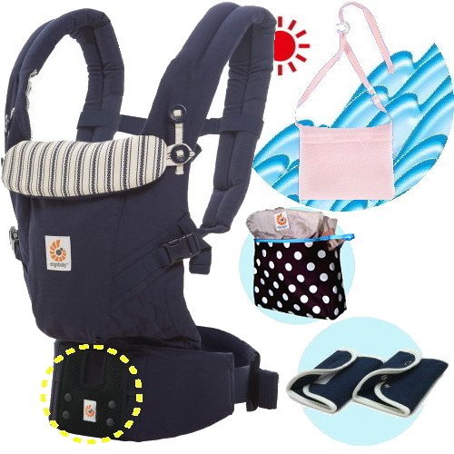 エルゴベビー抱っこ紐(ベルト付)/出産祝サマーセット (ADAPTアドミラルブルー)【正規品2年間保証-SG認定付】よだれパッド+収納ポーチ+ひんやりクールパット付