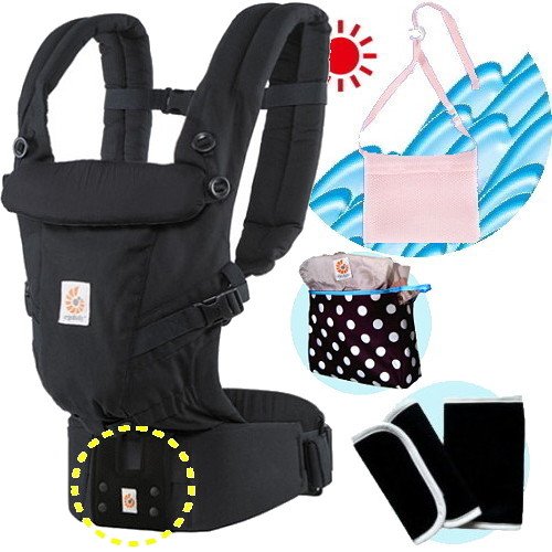 エルゴベビー抱っこ紐(ベルト付)/出産祝サマーセット (ADAPTブラック)【正規品2年間保証-SG認定付】よだれパッド+収納ポーチ+ひんやりクールパット付