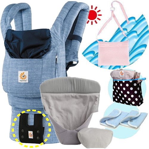 エルゴベビー抱っこ紐(ベルト付)/出産祝サマーセット (ヴィンテージブルー)クールエアインサート3III【正規品2年間保証-SG認定付】よだれパッド+収納ポーチ+ひんやりクールパット付