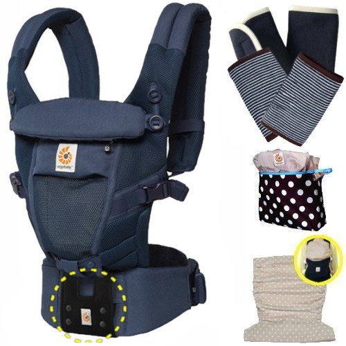 ベビーウエストベルト付エルゴベビー ADAPTアダプトクールエア/ディープブルー 替フードカバーセット【日本正規品2年間保証-SG認定付】フードカバー+よだれパッド+収納ポーチ付