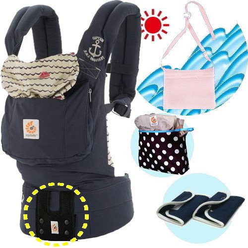 エルゴベビー抱っこ紐(ベルト付)/出産祝サマーセット (セーラー)【正規品2年間保証-SG認定付】よだれパッド+収納ポーチ+ひんやりクールパット付