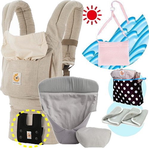 エルゴベビー抱っこ紐(ベルト付)/出産祝サマーセット (ナチュラルリネン)クールエアインサート3III【正規品2年間保証-SG認定付】よだれパッド+収納ポーチ+ひんやりクールパット付