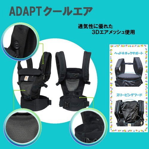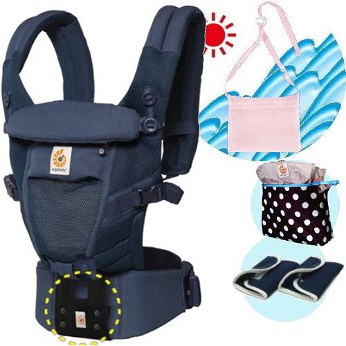 エルゴベビー抱っこ紐(ベルト付)/出産祝サマーセット (ADAPTクールエアディープブルー)【正規品2年間保証-SG認定付】よだれパッド+収納ポーチ+ひんやりクールパット付