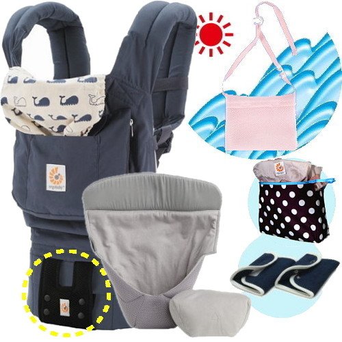 エルゴベビー抱っこ紐(ベルト付)/出産祝サマーセット (マリーン)クールエアインサート3III【正規品2年間保証-SG認定付】よだれパッド+収納ポーチ+ひんやりクールパット付