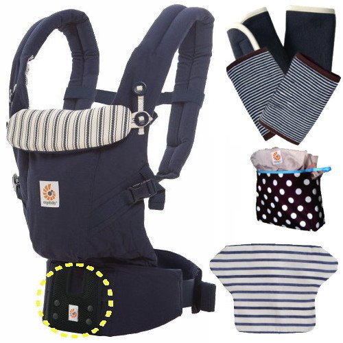 ベビーウエストベルト付 エルゴベビー ADAPTアダプト/アドミラルブルー プリントカバーセット【正規品2年間保証-SG認定】 (プリントカバー+よだれパッド+収納ポーチ付)