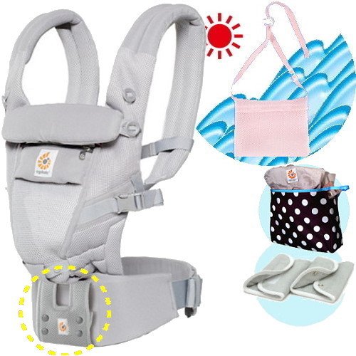 エルゴベビー抱っこ紐(ベルト付)/出産祝サマーセット (ADAPT/クールエアグレー)【正規品2年間保証-SG認定付】よだれパッド+収納ポーチ+ひんやりクールパット付
