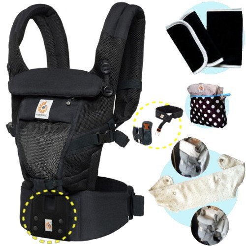 エルゴベビー アダプト クールエア ブラック 抱っこひも (ADAP クールメッシュ)【日本正規品2年間保証-SG認定付】ベビーウエストベルト+よだれパッド+ママ&ベビー両用カバー+収納ポーチ付)