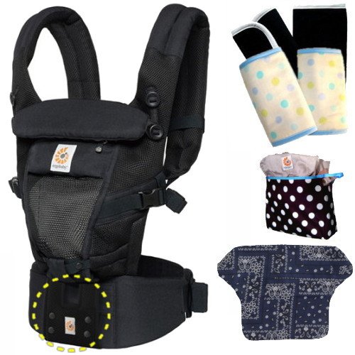 ベビーウエストベルト付 エルゴベビー ADAPTアダプト/クールエア・ブラック プリントカバーセット【正規品2年間保証-SG認定】 (プリントカバー+よだれパッド+収納ポーチ付)