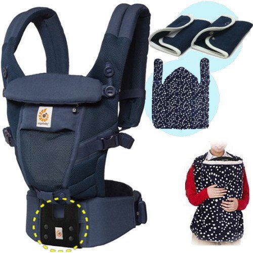 エルゴベビー 抱っこ紐 (ベルト付) ADAPTアダプト/クールエア・ディープブルー+防寒セット 【正規品2年間保証-SG認定】 +防寒ケープ&よだれパッド