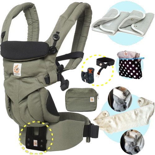 ベビーウエストベルト付エルゴベビー・抱っこひも【日本正規品2年間保証-SG認定付】OMNIオムニ360/カーキ (よだれパッド+ママ&ベビー両用カバー+収納ポーチ付)