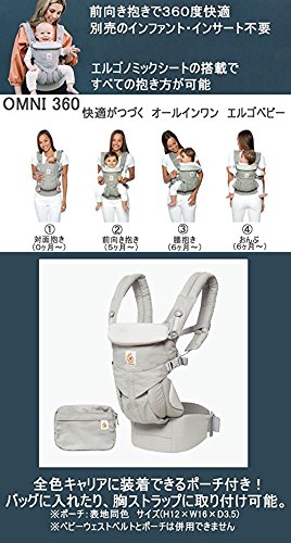 ベビーウエストベルト付エルゴベビー 抱っこ紐 OMNIオムニ360/パールグレー 防寒セットLd7【日本正規品2年間保証-SG認定付】本体+パッド2個+ポーチ付 ERGO Baby