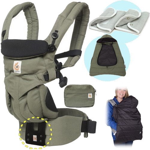 ベビーウエストベルト付エルゴベビー・抱っこひも OMNIオムニ360/カーキ 防寒セットL8【日本正規品2年間保証-SG認定付】 本体+防寒ケープ+パッド1セット付