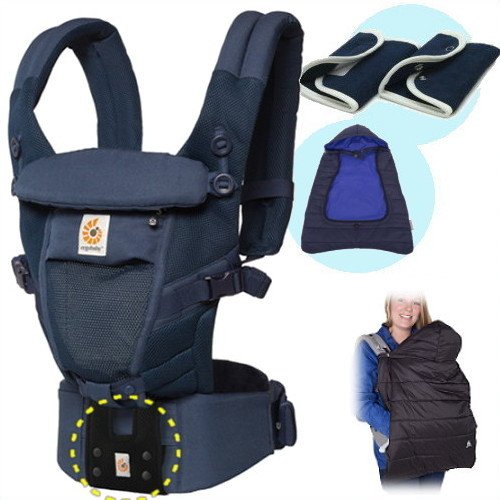 ベビーウエストベルト付エルゴベビー 抱っこ紐 ADAPTアダプトクールエア/ディープブルー 防寒セットL8【日本正規品2年間保証-SG認定付】本体+防寒ケープ+パッド1セット付