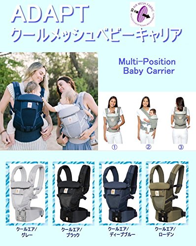 エルゴベビー アダプトクールエア グレー 抱っこ紐 (ADAP クールメッシュ)【日本正規品2年間保証-SG認定】ベビーウエストベルト付