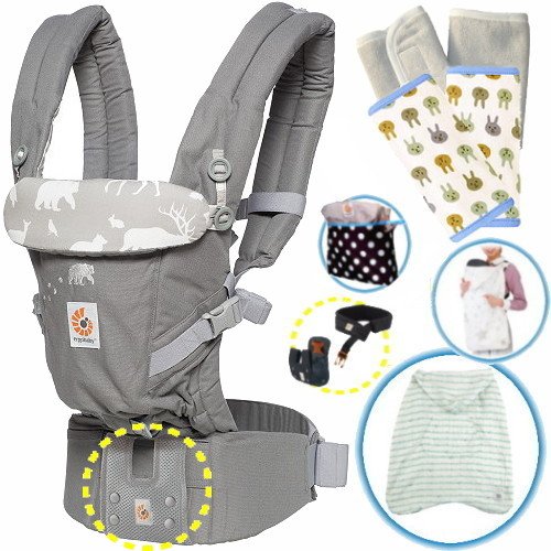 ベビーウエストベルト付エルゴベビー 抱っこ紐 ADAPTアダプト/フォレストフレンズ 春・夏おでかけセットS1【日本正規品2年間保証-SG認定付】本体+フィットケープ+パッド2個+収納ポーチ付 ERGO Baby