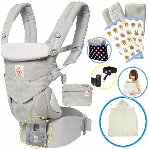 ベビーウエストベルト付エルゴベビー 抱っこ紐 OMNIオムニ360/パールグレー 春・夏おでかけセットS2【日本正規品2年間保証-SG認定付】本体+フィットケープ+パッド2個+収納ポーチ付 ERGO Baby