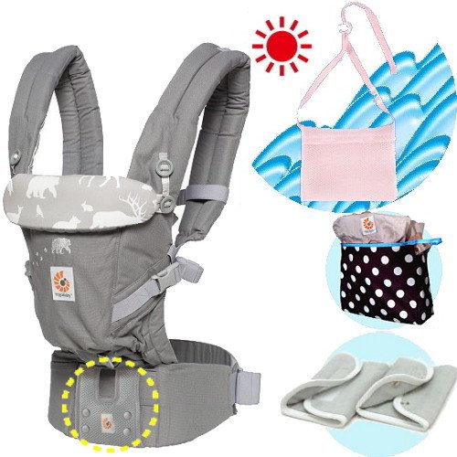 エルゴベビー抱っこ紐(ベルト付)/出産祝サマーセット (ADAPTフォレストフレンズ)【正規品2年間保証-SG認定付】よだれパッド+エルゴ用ひんやりクールパッド+収納ポーチ