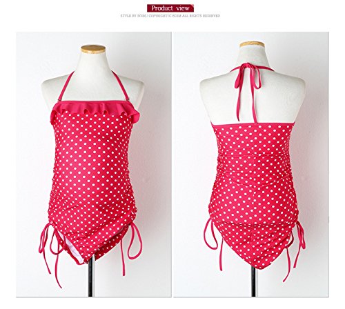 キュートな魅力あふれるピンクドットワンピース水着のご紹介です。 鮮やかなホットピンクカラーにホワイトカラーのドットがポイントとなり、 ホルターネックの後ろにはリボン結びを付けバックの視線もガッチリカバーします。 元気いっぱいの少女のような雰囲気に、胸の部分には薄いパットも内蔵し、 交換も可能な機能つきでございます。 カラーはホットピンクの1種類とサイズはM/Lの2種類を用意しました。 愛らしくてキュートなイメージでこの夏、貴方は忽ち水辺の主役に カラー Hot Pink 素材:TR素材 モデル:170cm/50kg サイズ:M/L M : 着丈 62cm/ウエスト74cm / バスト72cm L : 着丈 67cm/ウエスト80cm / バスト78cm