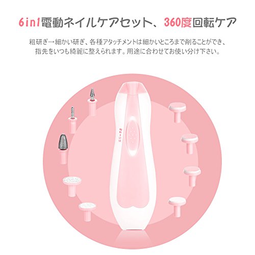 また、様々なヘッド付きので、全方向に爪をケアし、ネイルサロンのような体験を差し上げます。さらに、赤ちゃんにとって、各年齢層に対応するヘッド付きので、全方向に赤ちゃんの爪を丸く研磨できます。普通の爪切りよりよく爪のトゲを取り除けるので、赤ちゃん自分の顔に掻き傷を防止でき、まさに赤ちゃんを守る達人と言えます。