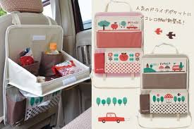- いろいろ入るメッシュポケット・ティッシュBOXケース・ドリンクホルダーなどの収納と、必要な時にパッと開けばテーブルになっちゃうトレイまで付いた便利な多機能アイテム。